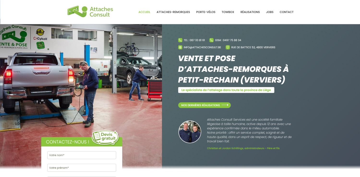 Nous sommes fiers de vous présenter notre dernière réalisation : le site web d’Attaches Consult, une entreprise spécialisée dans la vente et la pose d’attelages.